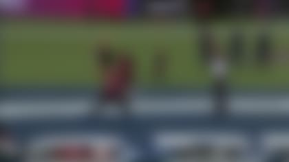San Francisco 49ers tight end George Kittle catches a touchdown pass from Tampa Bay Buccaneers quarterback Baker Mayfield.